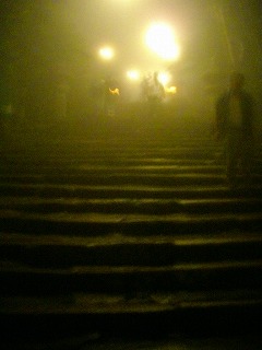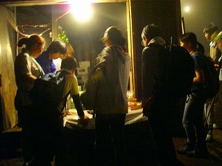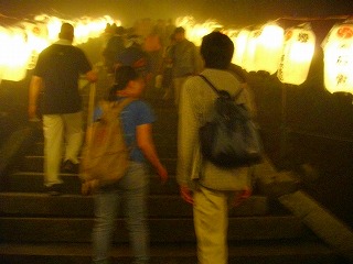 この詰めたてバイツェンは、ふだん500ミリ瓶をためらう人でも、二本目に手が伸びるような美味しさです。本当に同じものとは思えないくらいの美味しさです。 富士桜さんのバイツェンは賞味期限が35日と短いですが、それも特別美味しく楽しめる期間がこれだけというもの。 しかし、この詰めたてのびっくりするような美味しさは、大体一週間ほどのものです。今週中にお越しになれる方は、是非お買い求め下さい。 なお、一本だけ前回仕入れ分のバイツェンが残っています。こちらは賞味期限が8月13日。20日ほどの違いがどういうものか、比較するのに使えますよ(笑) 7月31日の夜、初めて愛宕千日詣りに行ってきました。一緒に三人の大学生がついてきてくれました。以前は愛宕さんも何度も登りましたが、かなり久しぶりのことです。遅れないように頑張ることになりました。 下界はぐずついていたので、その少し上になる山中は、視界も曇る猛烈な湿気です。夏の暑さも加わり、汗拭きのタオルは何枚あっても足りません。 この日ばかりは、途中にお店が出ていたり、消防団の臨時詰め所があったりと、いつもとは全く違う表情です。 高く登るにつれて風も心地よくなり、最後の日と踏ん張りの石段を登ると、ようやく山頂。生き返って心地でした。 下山は足下も滑りやすくなっており、用心しながらでしたので、思いのほかに時間がかかり、バスもどうにか最終に間に合って帰ることが出来ました。 筋肉痛は残りましたが、大いに汗をかいて良い気分でした。汗のおかげかご利益か、一緒の大学生さんたちは、肌のあれがよくなったとか、吹き出物がなくなったとか、そんなこともあったようです。
