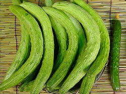 ちょっと驚きました。当店だけでなく、他のところの評判を聞いても結構好評だったので、不人気からではないはず。理由については詳細が書かれておらず、先方の事務所もこの時間では閉まってますから、問い合わせるのは後日です。 ともあれ、ちゃんと取り寄せますので、みなさん最後の味を覚えるためにも、お買い求めください。入荷は、多分土曜か月曜になると思います。 次回地ビールの会は、28日水曜日。間に合います。 それはそれとして、当店の地ビールの陳列場所の余裕がありません。みなさん、この商品に限らず盛大お買い求めください。 昔ながらのきゅうりを探しておられるかたはおられませんか? 写真にあるのは、昔ながらのきゅうりでも、早い時期に出てくる「朝風きゅうり」です。色が白いだけでなく、味も薄めであっさりしてるので、酢の物やサラダにするに向いています。 昔ながらのきゅうりは、皮が柔らかく実が詰まっていて、今の主流の黒イボ系等とは、歯ごたえも違うし、料理の仕方も違ってきます。 たとえば漬物にしたとき、実が詰まっている分、漬かる速さはゆっくりで時間がかかります。朝一番にぬか床に漬け込んでも、昼ごろではまだ漬かっていませんで、夕食で朝漬かりと普通の間くらいです。一晩くらいが丁度いいようです。また、塩漬けにして保存したときに、重石でつぶれることもありませんので、見た目に格好いいと喜ぶ方もあります。 それなりに利点もあるのですが、廃れてしまった理由の一つは、実が大振りになりやすいこと。写真の右にあるのは、ごく普通のサイズのきゅうりです。結構大きいでしょ? それから、実が詰まっているので、ずしりと重いのですが、その分取れる数も少なくなります。かかる手間は同じか余計にかかるくらいなのですから、値段が高くなってしまうんですね。 うちでも、朝風きゅうりをご存知の方は少なめ。まだたくさんは売れませんが、ちょっと違ったきゅうりを楽しんでいただけるように、置いています。夏も盛りになるころには終わってしまうので、お早めにお買い求めください。