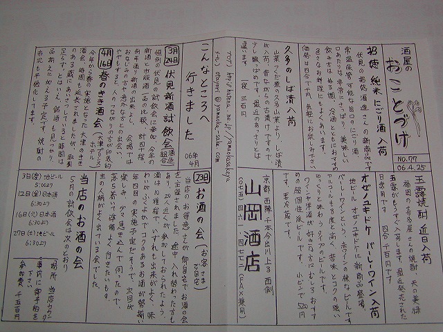 otayori@yamaoka-sake.com 京都市上京区千本今出川上る牡丹鉾町555 電話番号 075-461-4772